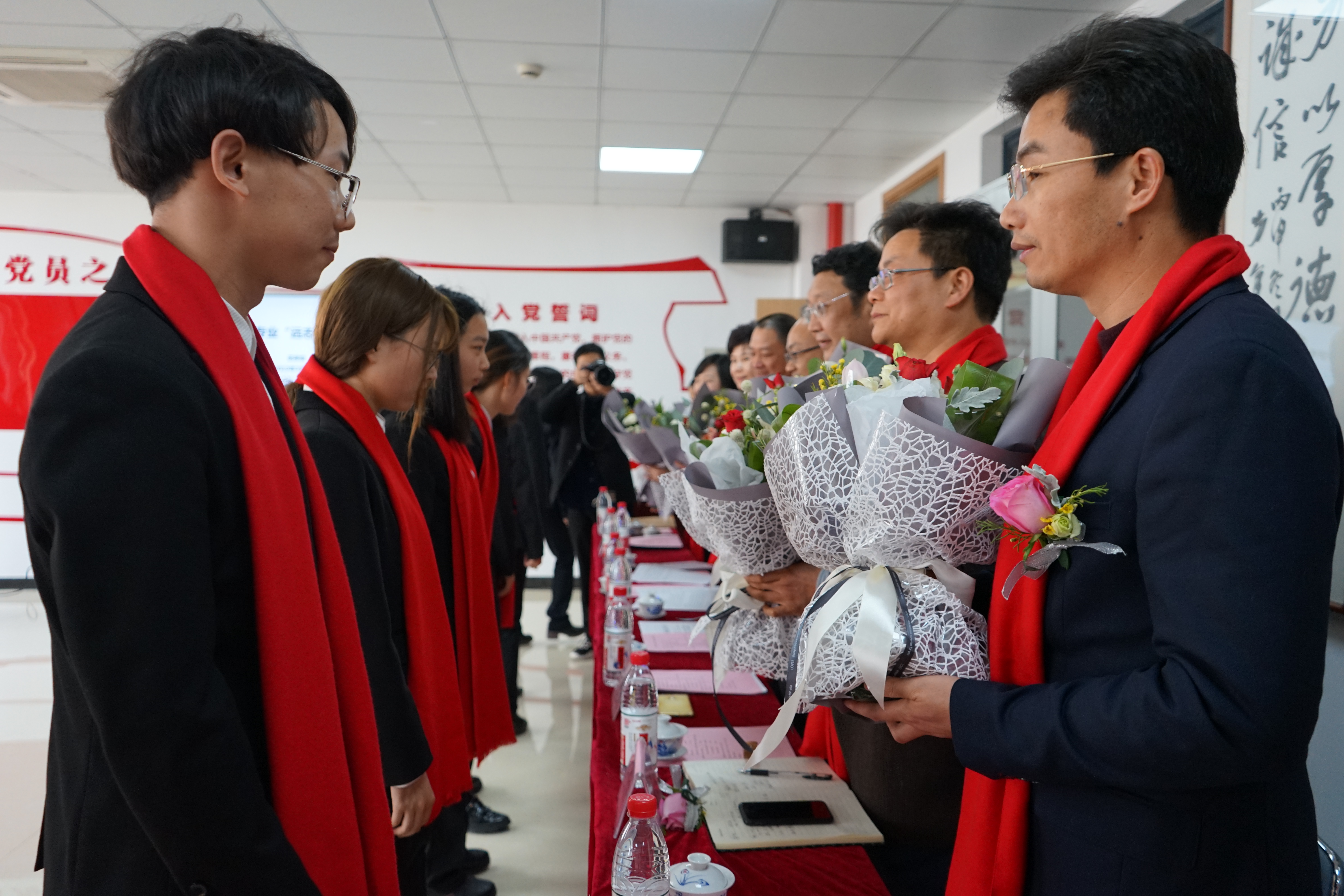 随后举行庄重的拜师仪式,15名“远志班”员工分2批向校内外导师行礼,鞠躬、敬茶并献上鲜花。通过这一隆重又亲切的仪式,让师徒双方更明确了自己的角色,更表达了同学们对导师们的敬意,明确了使命担当,表明了自己发奋努力、立志成为祖国中医药事业传承者的坚定决心。
