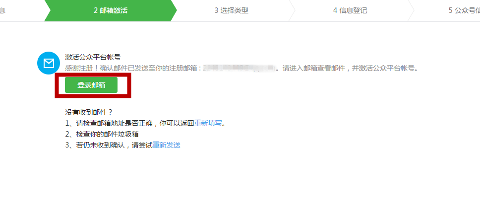 2.用邮箱注册(该邮箱需未被微信开放平台注册,未被个人微信号绑定的邮箱)