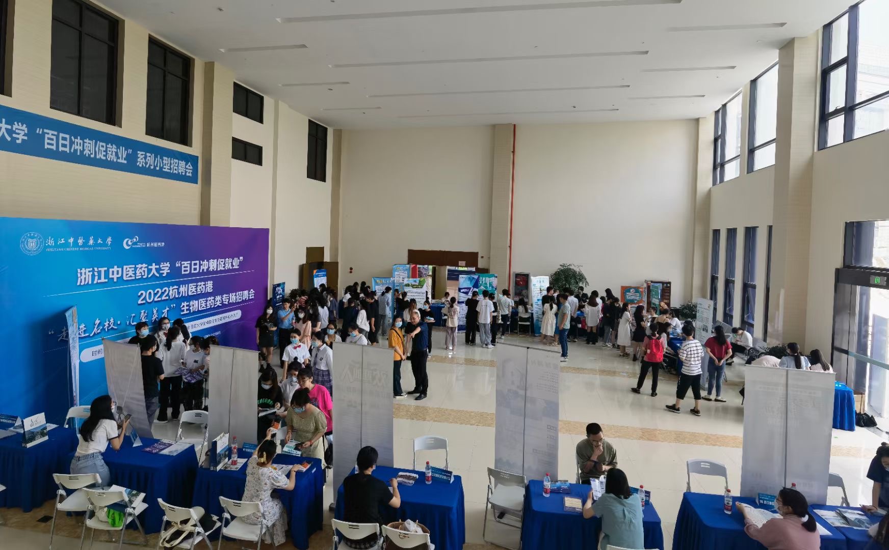会后,200余位毕业生和高年级员工参加了由学工部牵头组织的“百日冲刺促就业”杭州医药港生物医药类专场招聘会。