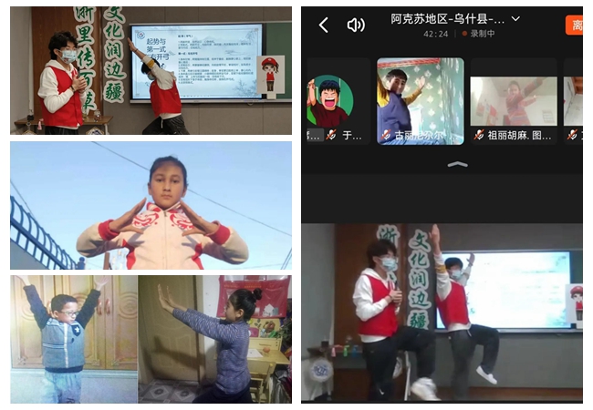 除了动作的教学,志愿者还对七星功的发展历程和其中的古代中医思想进行了讲解,每一招每一式,是养生健体之法,也是立身之则。课堂展示环节便是独属于孩子们自己的舞台了。新疆的孩子们着迷于七星功神秘的动作。腼腆的他们,认真细致地打出每一式。脸上稚嫩的笑容,顿时点燃了课堂活泼的氛围。孩子们学习能力也很强,几次练习后便能独立地打出所教的招式,引得志愿者们对其竖起了大拇指。