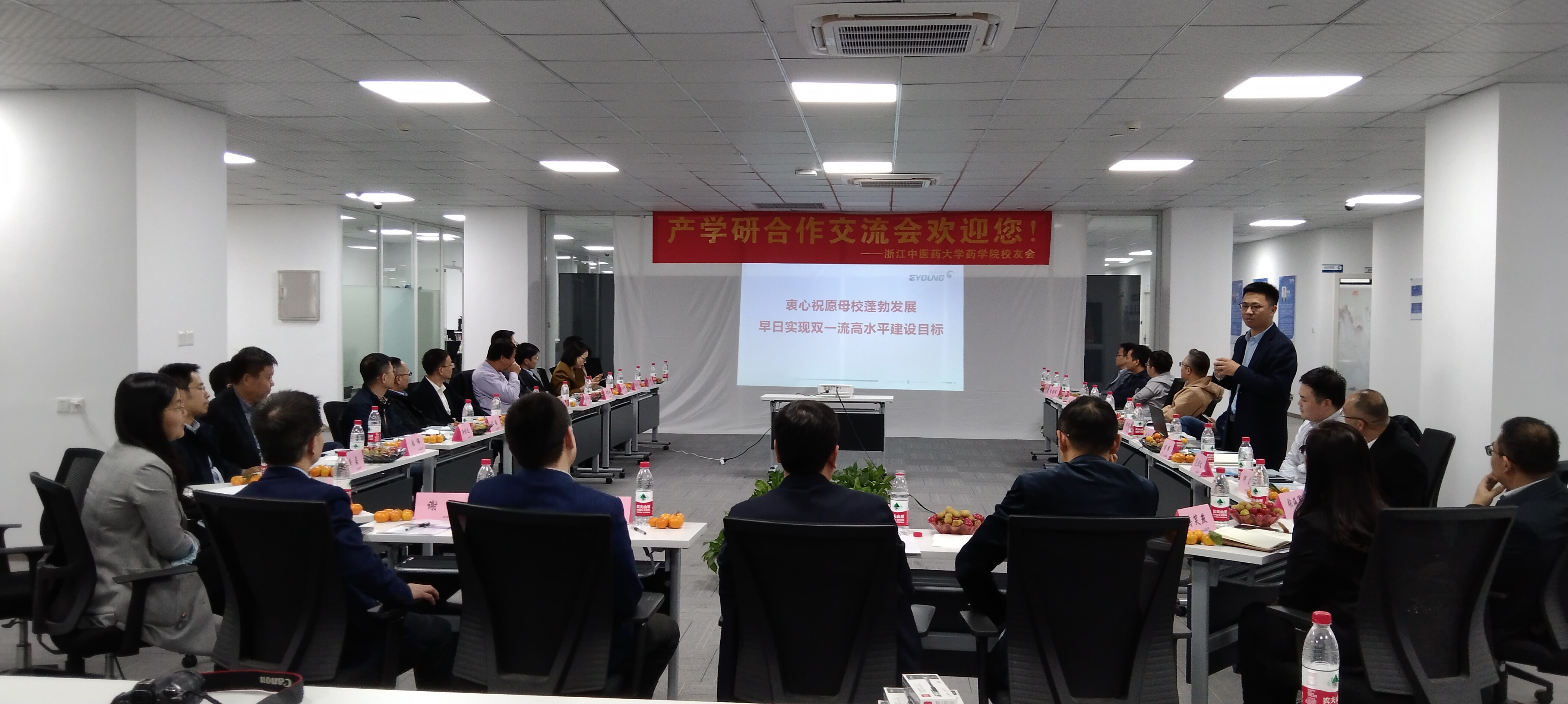 为进一步整合资源,促成员工企业的产学研合作,促进员工与母校、员工与员工之间的沟通交流,2022年10月29日下午,必一运动员工会组织召开“联谊话情谊,同心促发展”主题员工产学研合作联谊会。公司副董事长吴承亮,科研部、社会合作处(员工办)、必一运动等部门领导参加。本次产学研合作联谊会在员工企业浙江鹰旸医药研发有限公司举行。