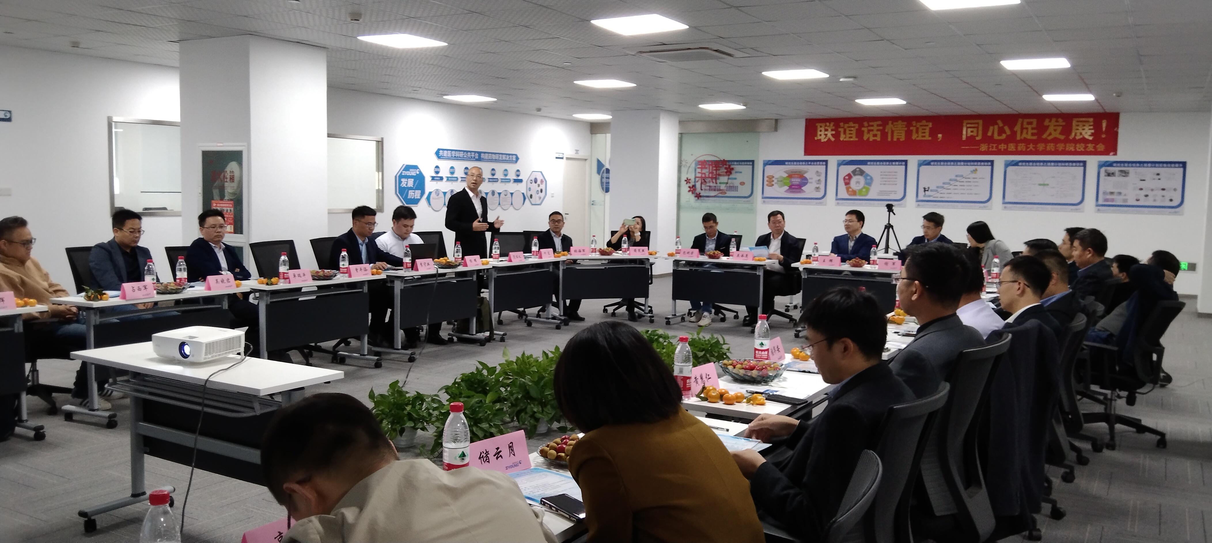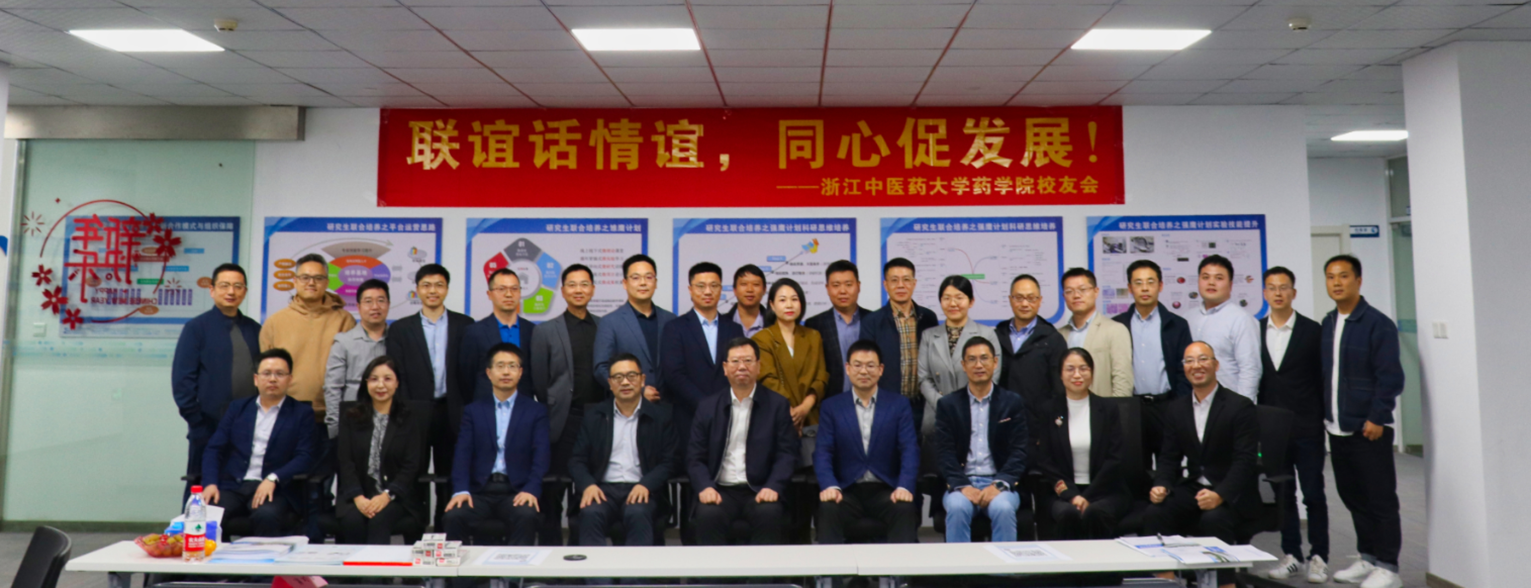 联谊会汇聚了来自浙江省药监局药品流通监管处、杭州市食品药品检验研究院、余杭区第一人民医院、浙江鹰旸医药研发有限公司、杭州暖心科技有限公司、国科大杭高院创新创业与产业孵化中心等30多位员工、员工企业代表。