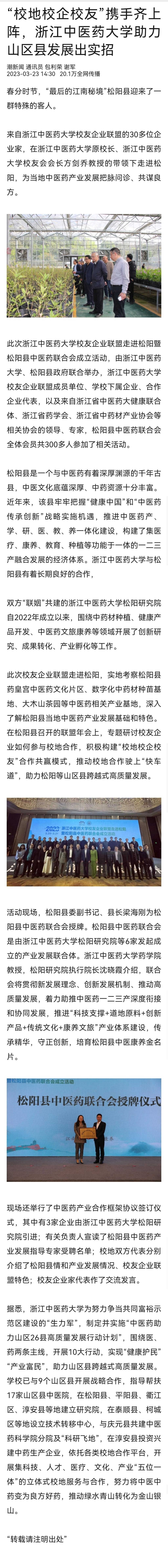松阳县是一个与中医药有着深厚渊源的千年古县,中医文化底蕴深厚、中药资源十分丰富。近年来,该县牢牢把握“健康中国”和“中医药传承创新”战略实施机遇,推进中医药产、学、研、医、教、养一体化建设,构建了集医疗、康养、教育、种植等功能于一体的一二三产融合发展的经济体系。必一运动体育公司与松阳县有着长期良好的合作,双方“联姻”共建的必一运动体育公司松阳研究院自2022年成立以来,围绕中药材种植、健康产品开发、中医药文旅康养等领域开展了创新研究、成果转化、产业孵化等工作。