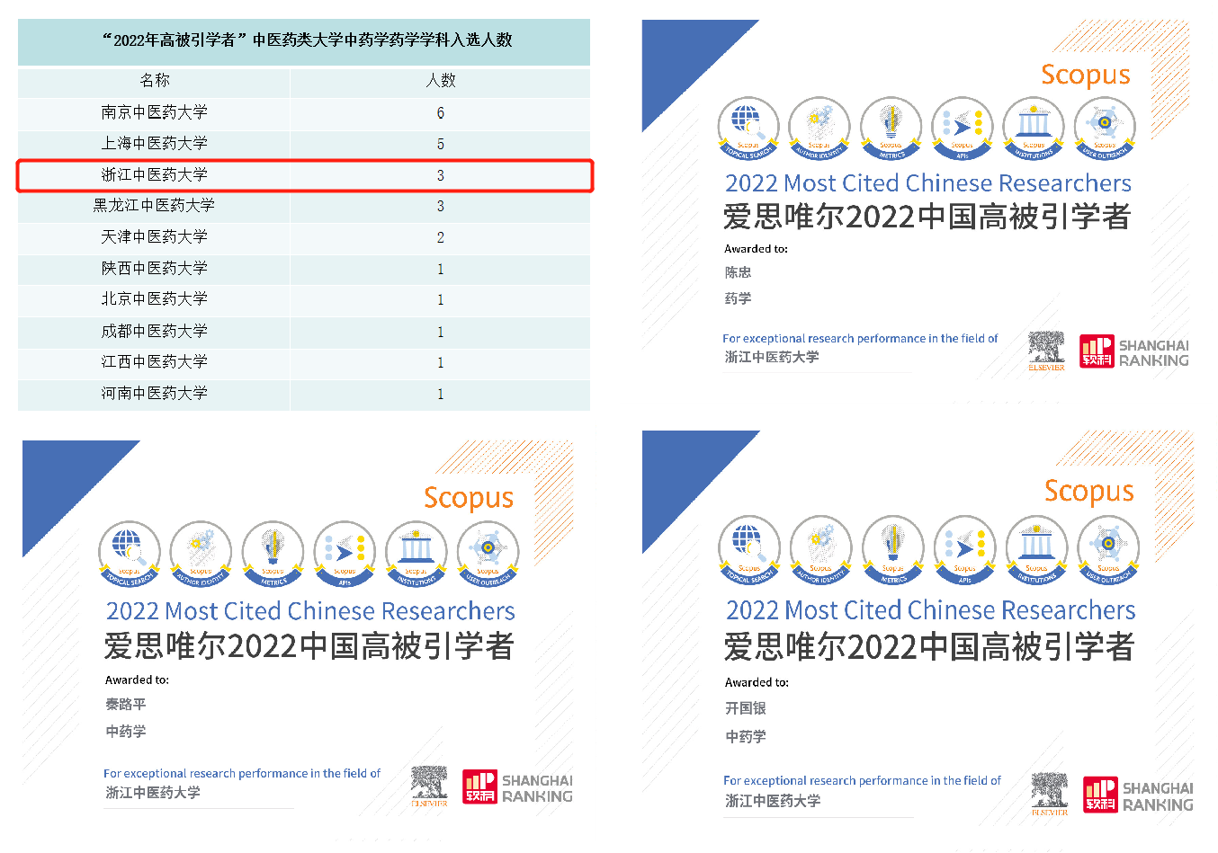 本次入选“中国高被引学者”榜单的中国学者共计5216名。其中中医药类大学共计11所45名学者入选,公司入选的3位学者分布在中药学药学学科,入选人数位列全国同类院校第三名。