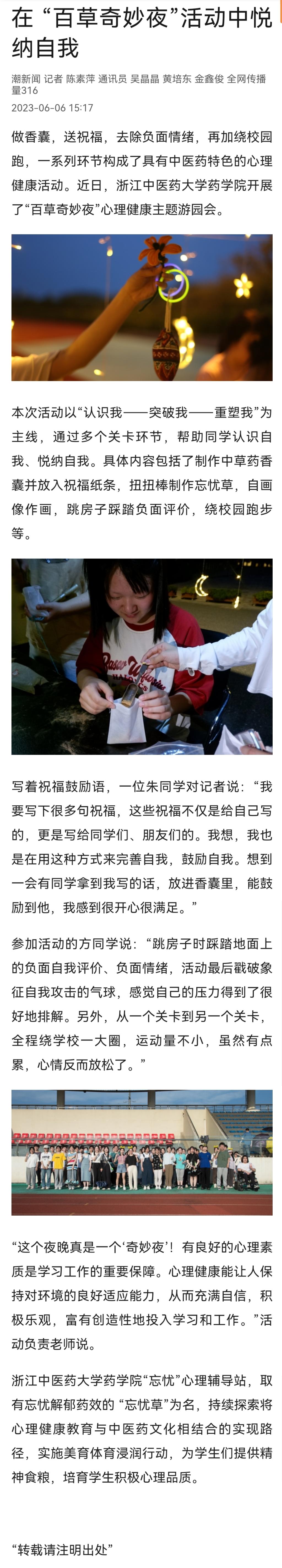 在 “百草奇妙夜”活动中悦纳自我