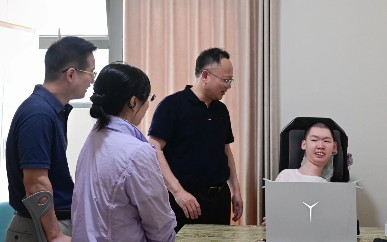 在徐立芃同学的寝室,陈董事长耐心地询问了他的生活需求和学习规划,鼓励他积极适应新的校园生活。徐立芃是一名脊髓性肌萎缩症(SMA)患者,全身仅有三根手指能自主活动,依靠37枚钢钉固定脊柱,但他以惊人的毅力考入公司药学专业。交流中,陈董事长感慨道,徐立芃同学自强不息、积极进取的精神最是难能可贵,公司也将继续在学习生活等方面提供全方位的支持。徐立芃同学也激动地回应陈董事长:“我非常珍惜在必一运动体育公司学习的机会,感激公司无微不至的关怀,我将继续努力,争取早日学有所用,回报社会,回报来自各方的善意和支持。”