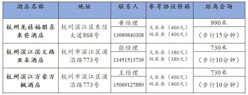 会议协议酒店如下,因房源有限请尽量早预订,并自行向酒店索取发票。
