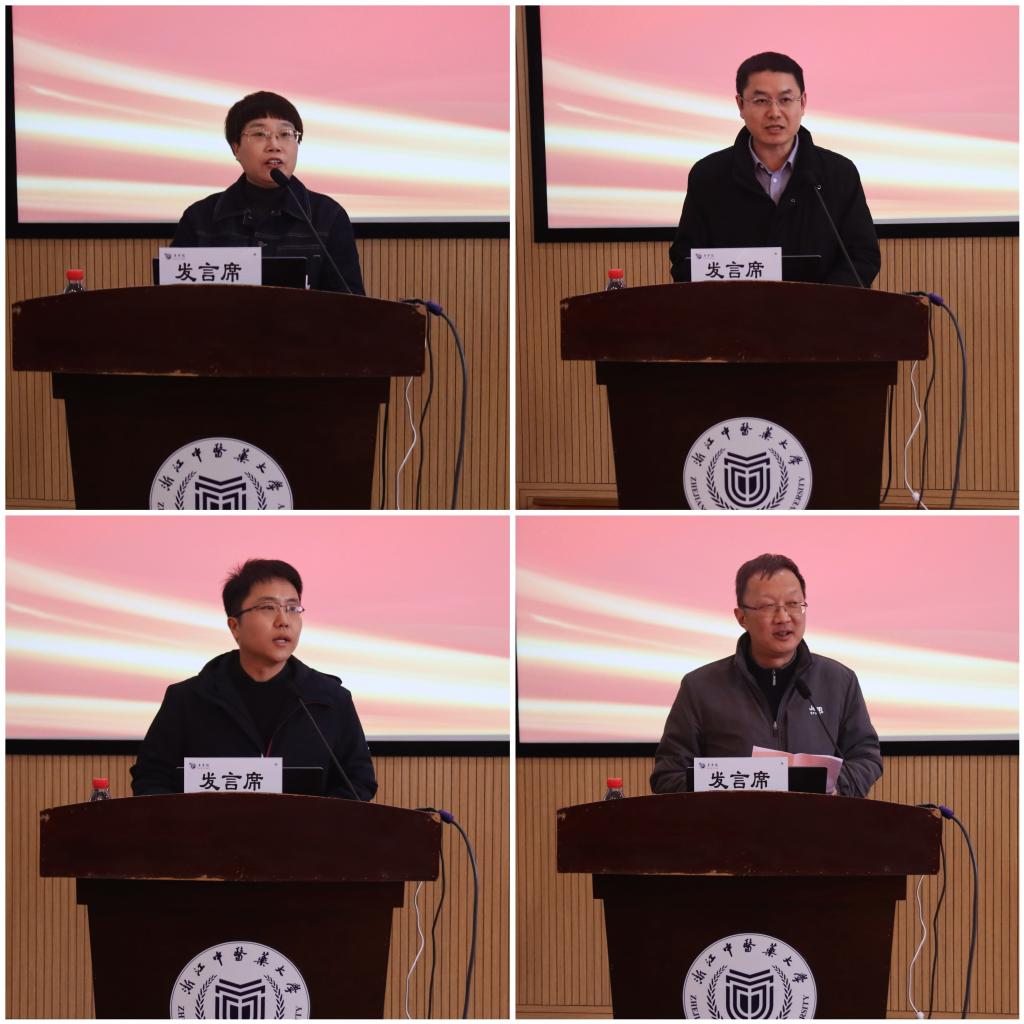 考核优秀基层教学组织代表、考核优秀党支部代表、优秀教师和先进工作者代表,分别围绕课程与教材建设、教研室规范化建设、党建赋能共同富裕、科技创新、员工双创工作等方面作交流发言。