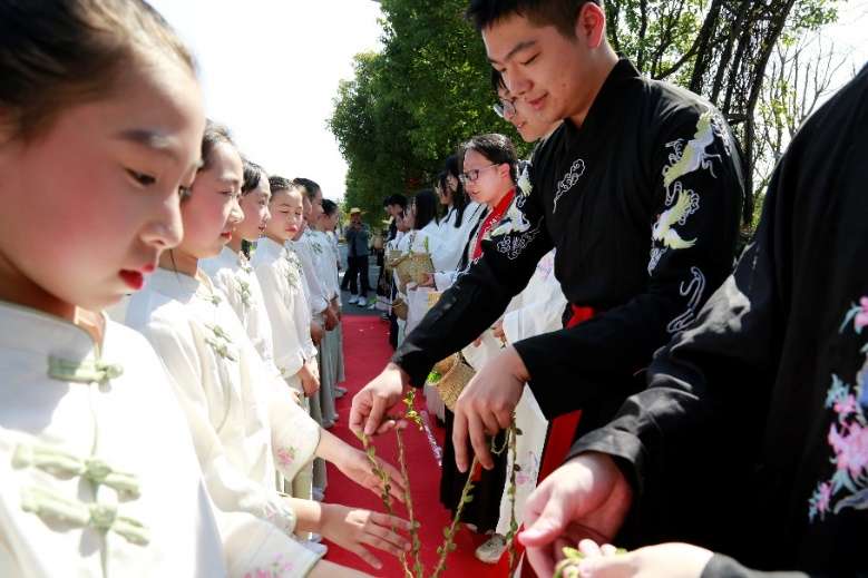 活动现场,身着汉服的“药博士”们将盛满中草药种苗和种子的小背篓递给小员工们,向他们介绍篓中本草的名字、功效和特征,并帮他们将竹篓背至肩上,每个孩子脸上洋溢出喜悦的笑容。