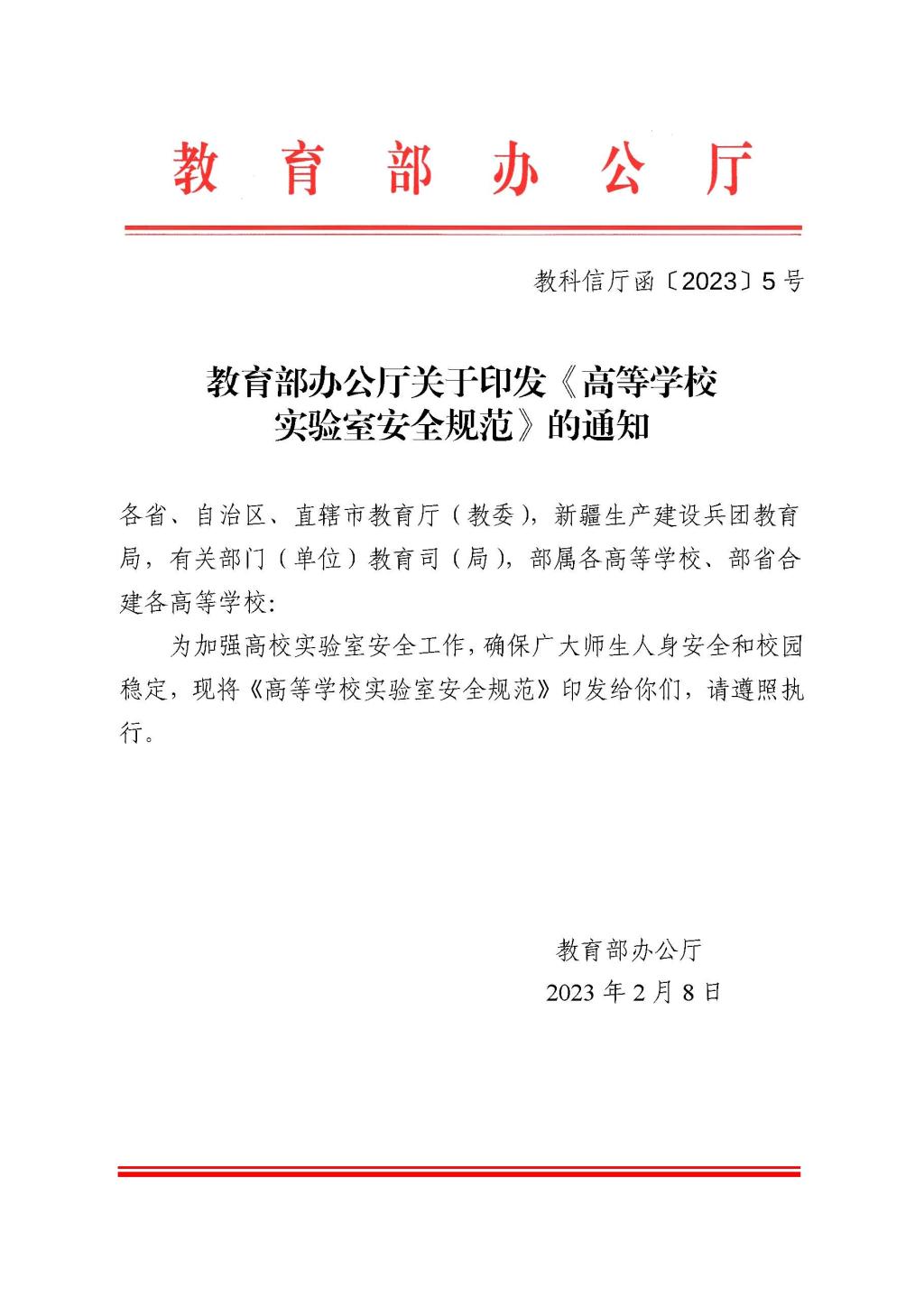 附件:教育部办公厅关于印发《高等公司实验室安全规范》的通知