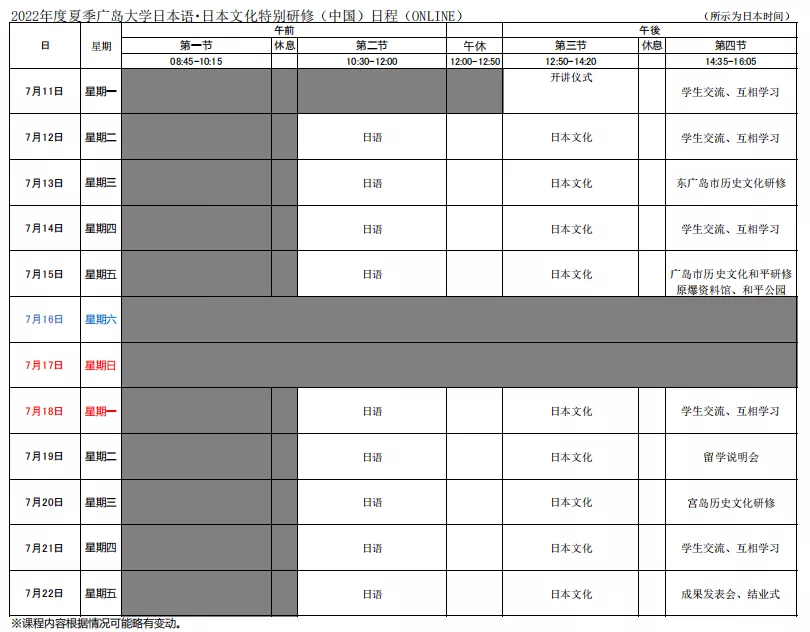 项目证书:由广岛大学颁发结业证书和成绩证明