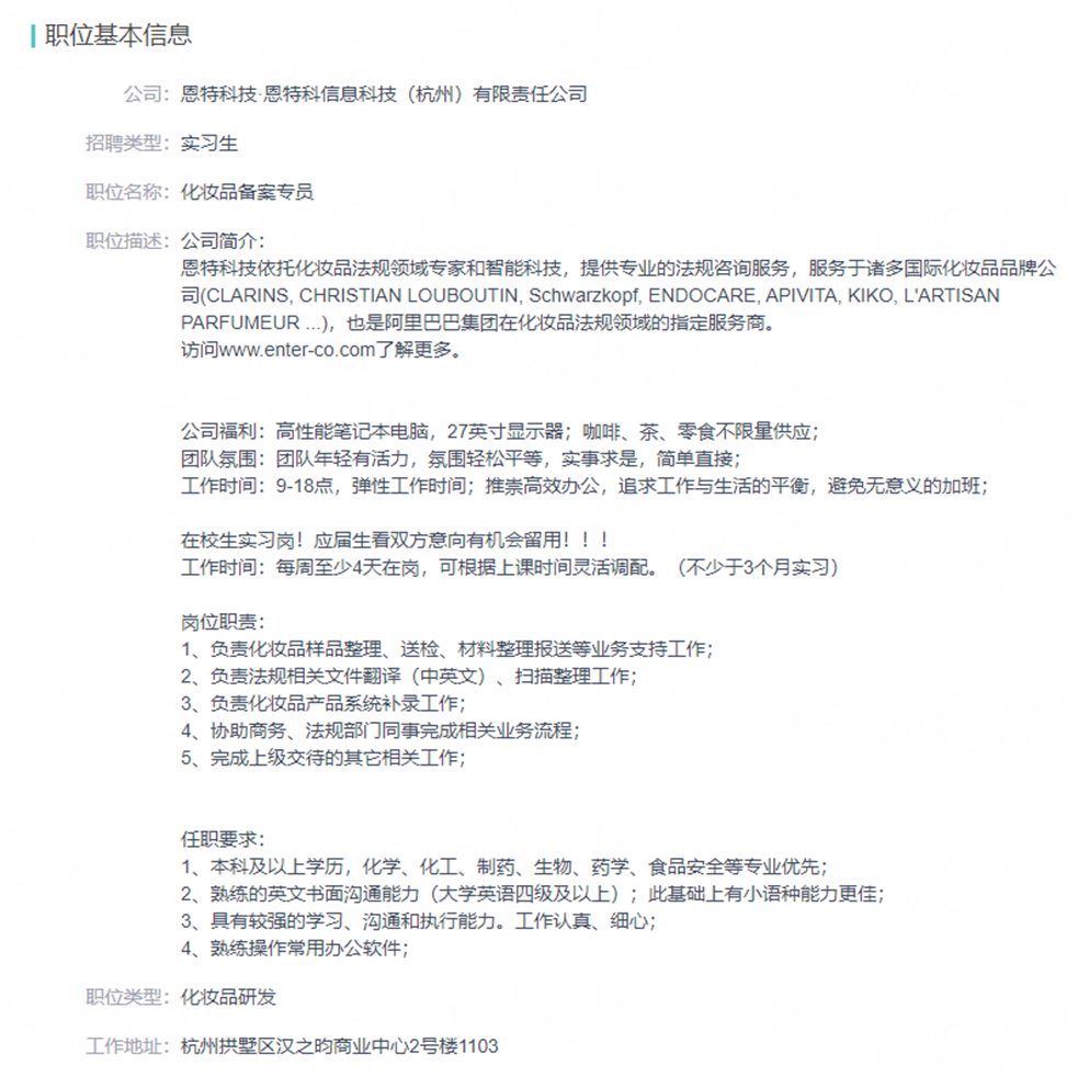 有boss直聘的可以直接找到,或者邮箱jess.chen@enter-co.com 备注【近期可实习】就可以
