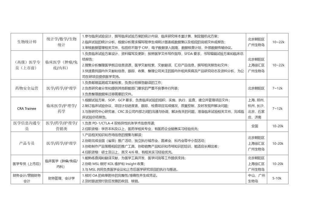 中山康方生物医药有限公司招聘信息