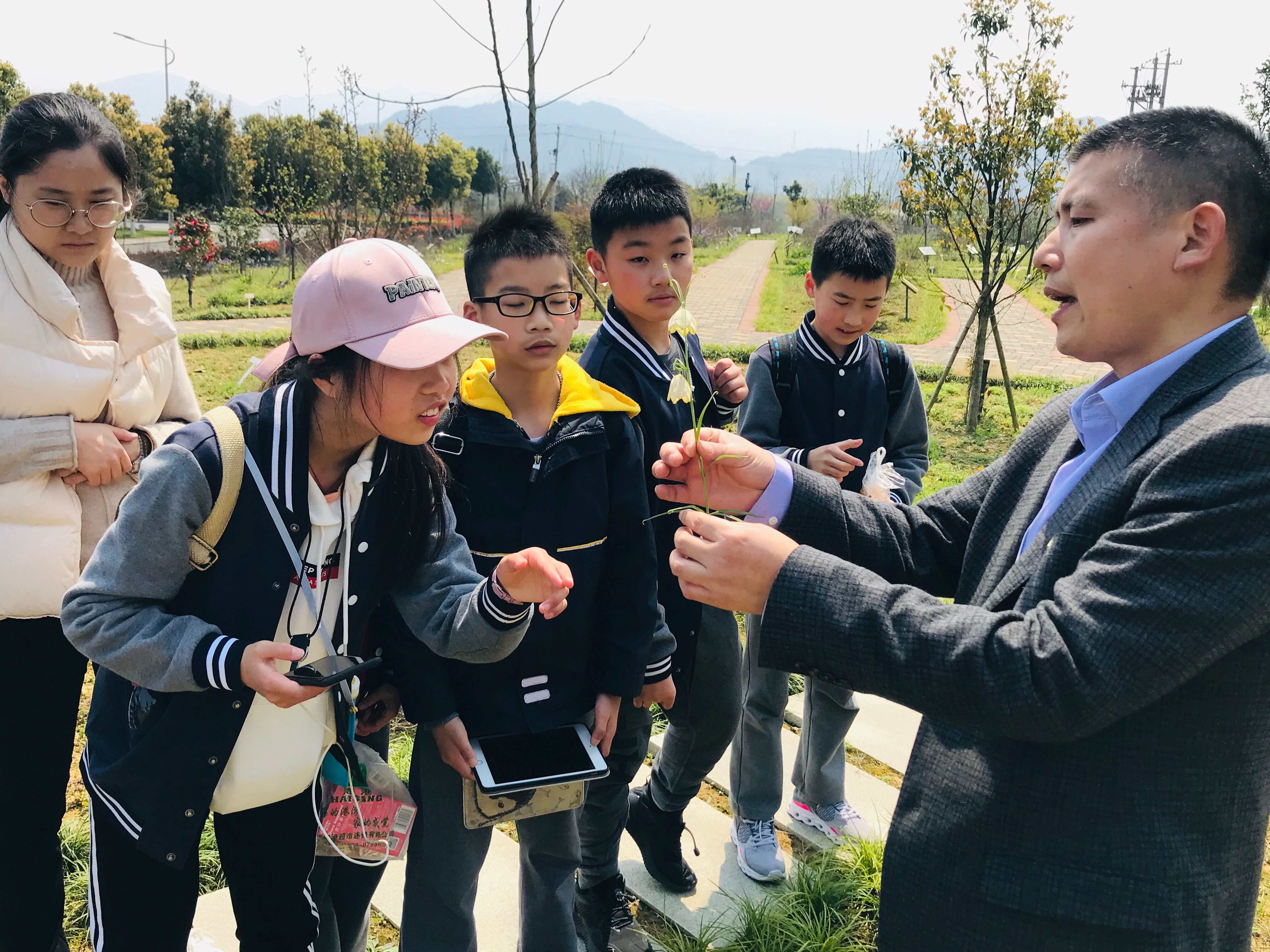 活动分为上下午两场。活动开场由必一运动志愿者协会的沈依珂同学为同学们主讲中医药小课堂之《有趣的中药》,不仅改变了他们对中药局限的认知,还使他们收获了颇丰的中医药知识。随后公司教工第一党支部的老师们为同学们开启了中草药科学知识讲堂。中药资源教研室、生药学教研室主任张水利教授不仅为同学们讲解了中草药小知识,还给同学们分享了他在多年中药资源普查中经历的趣事。志愿者们为同学们发放了小礼物-苍耳子,张教授围绕这小小的苍耳子,讲解了其中蕴藏着的中药知识和人生道理。张教授也对同学们提出了希冀,期望能有更多的孩子们未来能投身于祖国的中医药事业,传承我们老祖宗的医药智慧。最后教工第一党支部的老师们和志愿者们带领同学们前往富春校区百草园,为大家讲解如何辨识中药和各类植物的药效。同学们围绕着老师和志愿者们,孜孜不倦地汲取着大自然的知识,体验别样的中医药校园文化。