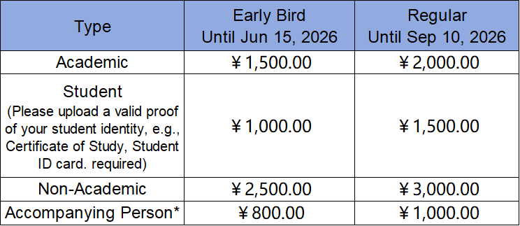 *Covers 3-day conference lunches & banquet on 16th October evening only; accompanying persons cannot attend the scientific conference.